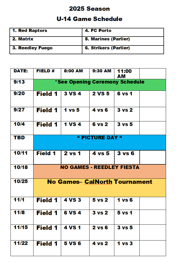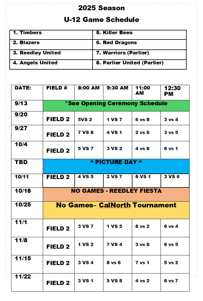 2025 Team Schedules
